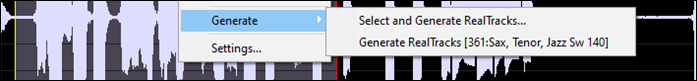 To generate RealTracks on a Utility track, right-click on that track in the Mixer and go to Generate | Select and Generate RealTracks. If you want to generate RealTracks for a region, highlight the region on the Utility track in the Audio Edit window. Then, select a RealTracks in the Best RealTracks dialog and press OK.