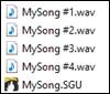 When you save the song, the Utility tracks will be saved as audio files (.WAV) with the same name in the same folder. For example, if you save the song as MySong.MGU, Utility track #1 will be saved as MySong #1.WAV, Utility track #2 will be saved as MySong #2.WAV, etc. Then, next time you open MySong.MGU, these audio files will be loaded to the Utility tracks.