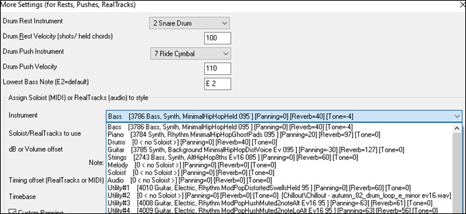 In the More Settings dialog, select a Soloist or RealTracks for each of the tracks you need in the “Assign Soloist (MIDI) or RealTracks (audio) to style” area.