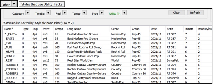 Some new styles were made using Utility tracks. You can find them in the StylePicker by pressing the [Other] filter button and selecting Styles that use Utility Tracks from the menu.
