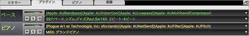 [プラグイン] のタブでは、ソフトウェアシンセサイザーやエフェクトが表示されます。