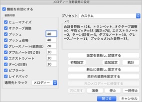 メロディー自動装飾の設定ダイアログ
