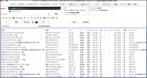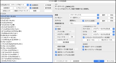 メモ:ソリストの演奏のクセや特徴等が表示されています。さらに、ソロの生成に使用されるデータベースが表示されます。