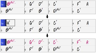 各セルにコードを2つ入力できますので、各小節に最高4つ入力できます。