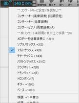 ノーテーションウィンドウやリードシートウィンドウ、ピアノロール等のトラック切り替えボタンに完全な日本語のトラック名が表示されます。旧バージョンでは英語のトラック名の頭文字(B、P、D等)が表示されました。