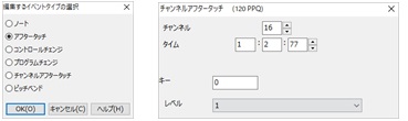 マルチチャンネルのメロディートラックにMIDIを録音すると、録音終了を告げるダイアログに「録音先MIDIチャンネル」のオプションが表示されますので、チャンネルを選択します。チャンネル2~10は伴奏トラックに使われる為、11~16を選択します。