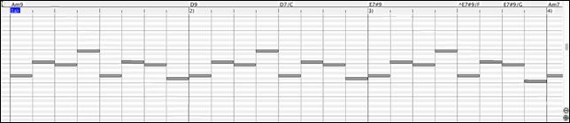 Set the “View/Edit” control to “Pitch Bend.” Play the demo song and watch how a few pitch bends have been inserted to “scoop” some note attacks, “sting” the middle of a note, or “fall off” some note releases.