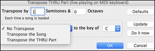 Note: This does not transpose the music. To do that, use the song key box to the right of the Style area. |