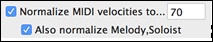 Normalization for the Melody and Soloist tracks is optional, if you want their MIDI velocities left “as-is” you can uncheck the "Also normalize Melody, Soloist" option.