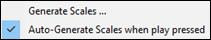The menu item Generate Scales opens the dialog, which allows you to set options for scales that will be generated. If Auto-Generate Scales when play pressed is checked, scales will be automatically generated when a song is played. You can view the scales in the notation and the on-screen guitar and piano.