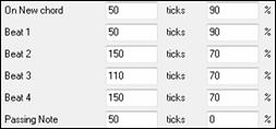 Note Duration thresholds: The settings for Note Duration thresholds to get a chord refer to how long a note must be before a chord will be generated. (Quarter note = 120 ticks)