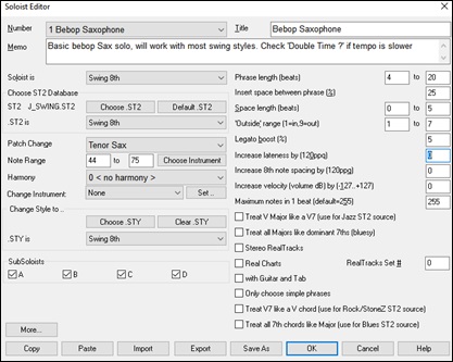 - Choose the type of soloist (i.e. swing 8th notes, straight 8th notes, 16th notes, etc.) This should be set to Swing 8ths.