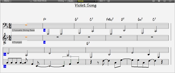 Band-in-a-Box uses an intelligent auto-duration feature to determine how long the note should be. Auto-durations mean that you can enter a lead sheet style melody by just clicking once per note, dramatically speeding up the entry of notation.
