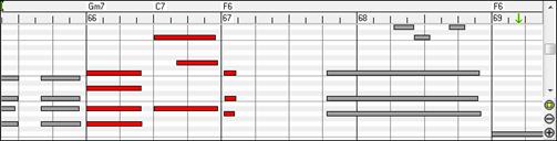 Click or drag in the Chords Ruler to set the Insertion Point (useful if you wish to use the menu Edit | Paste (Ctrl+V) to paste into the Piano Roll). If a song is playing, a Chords Ruler click will stop playback.